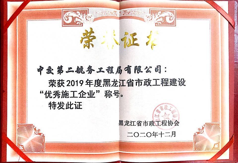 2019年度黑龙江省市政工程建设“优异施工企业”