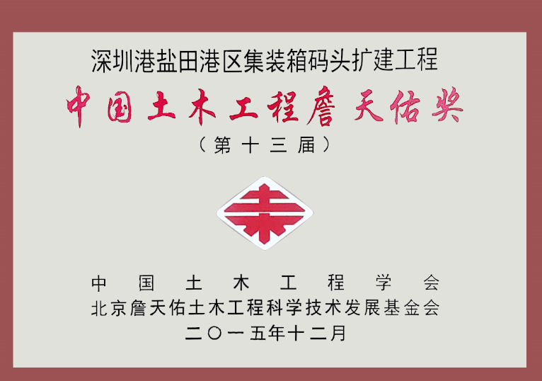 深圳盐田港三期工程获中领土木匠程“詹天佑”奖